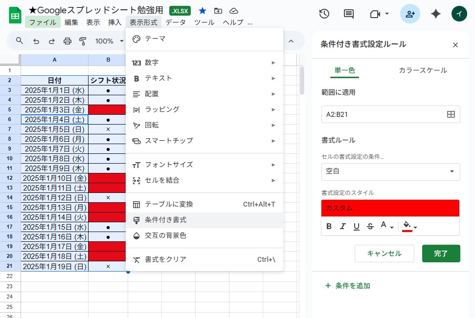 Googleスプレッドシートで空白セルを見つけるため色を付ける方法