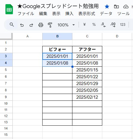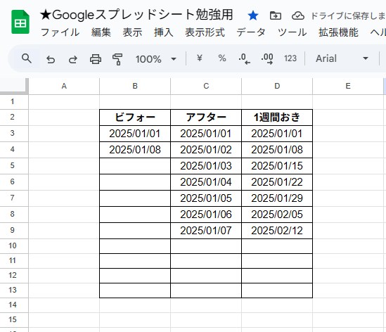 Googleスプレッドシートで一定の間隔で連続した日付を自動入力する方法