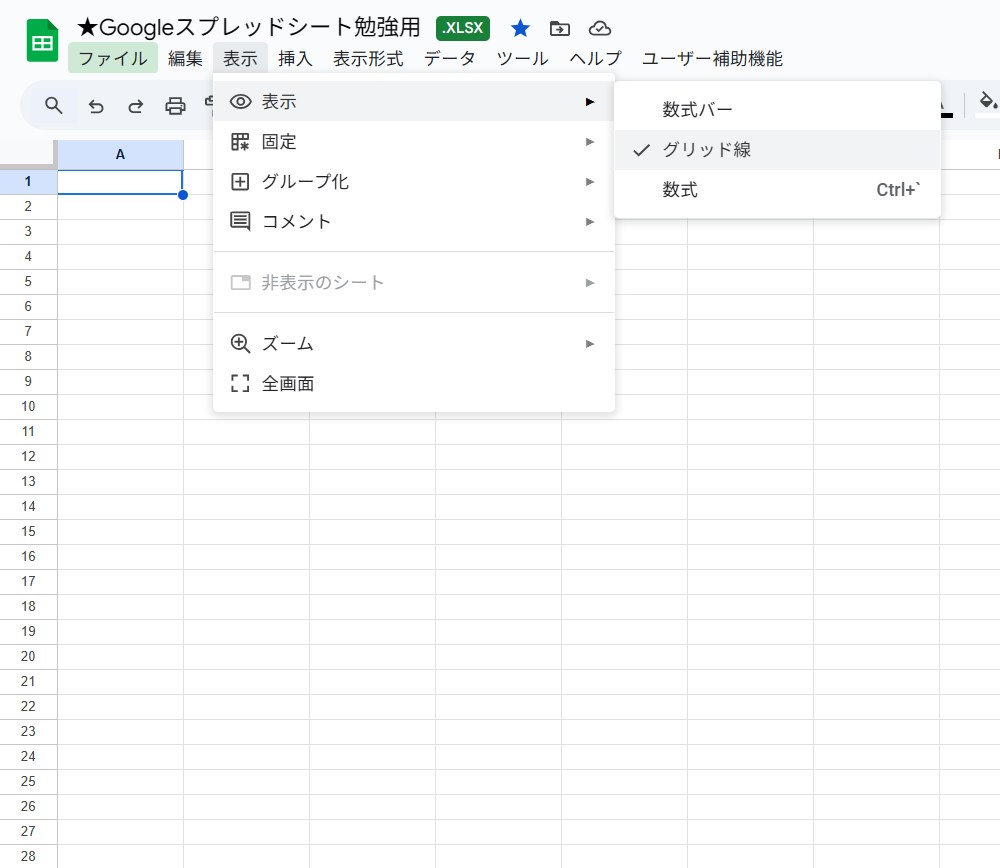 Googleスプレッドシートに最初から表示されている薄いグレーの枠線(グリッド線)を消す方法