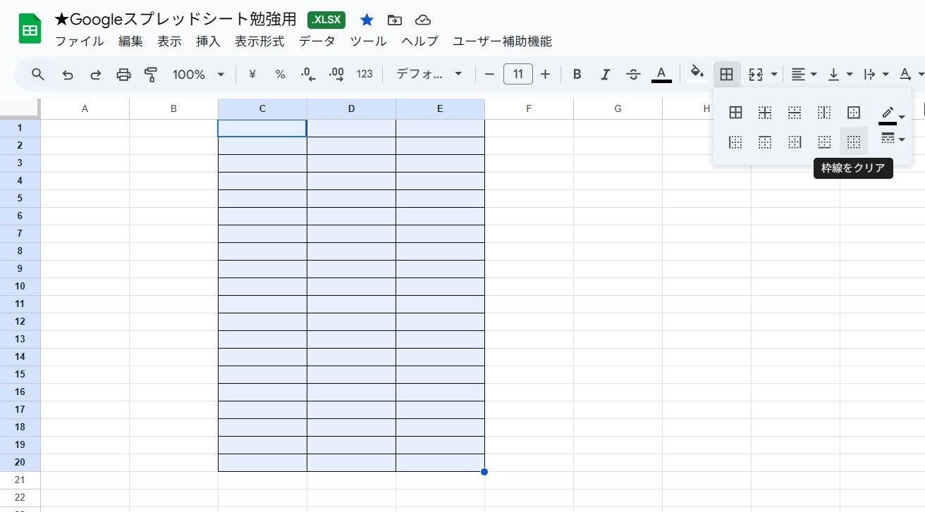 Googleスプレッドシートで自分が作った枠線を消す方法