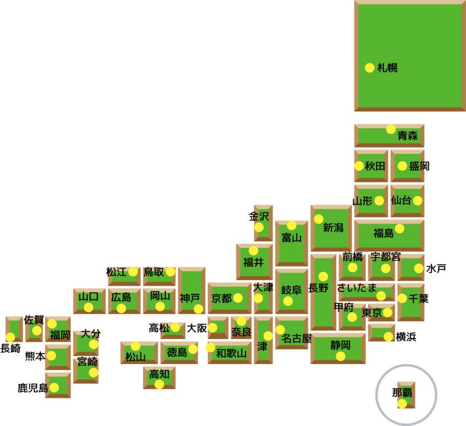 覚えるべき都道府県の県庁所在地一覧(18ヶ所)